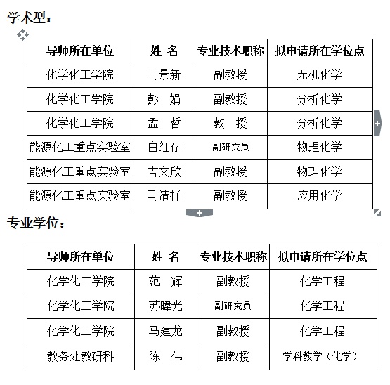 根据《排列五 硕士生导师选聘及招生规定(试行)》及《排列五 化工学院硕士生导师选聘细则(试行)》的规定,学院于4月20日召开院学位评定分委会,能源化工重点实验室郭庆杰主任、赵天生常务副主任及王政副主任列席参会,经分委会委员不记名投票表决,拟向研究生院推荐马景新等十人为硕士研究生指导教师,现公示如下: