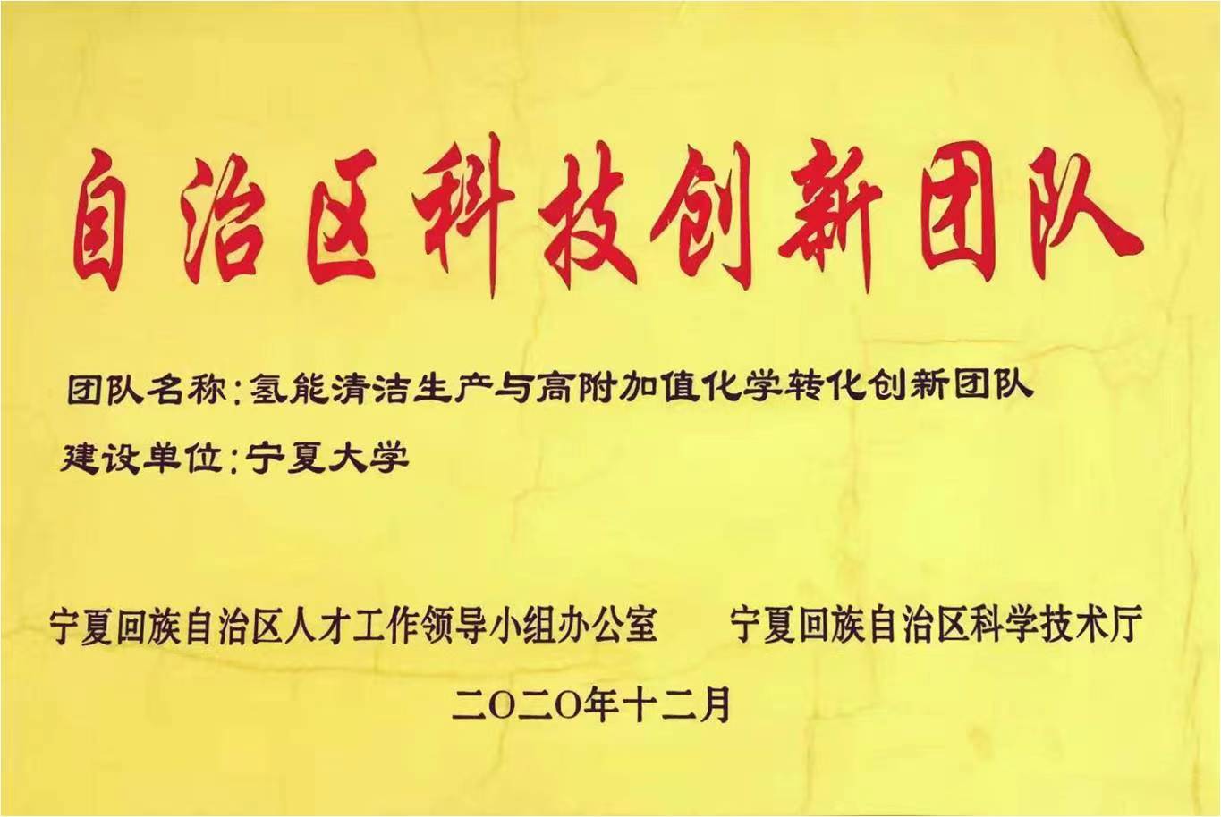 氢能清洁生产与高附加值化学转化创新团队(宁夏科技创新团队)