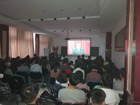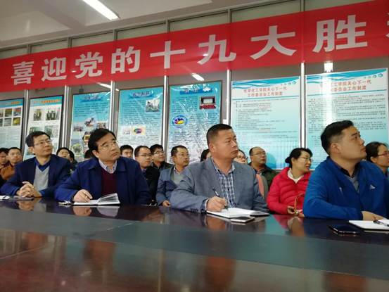 党委组织院室班子成员,此时段没有教学、值班任务的教职工,在学院知化楼3楼会议室,集体收看党的十九大开幕会,聆听习近平总书记代表十八届中央委员会向大会所作的题为《决胜全面建成小康社会 夺取新时代中国特色社会主义伟大胜利》的报告。