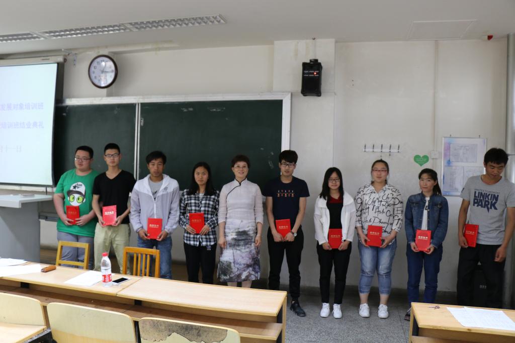 典礼在庄严的国歌中开始,王艳梅老师先对本次培训情况进行总结,对学员们学习期间的表现进行了点评。潘书记宣布了对优秀学员的表彰决定,入党积极分子优秀学员代表2015级谭梦瑶和发展对象优秀学员代表2014级苏梦瑶分别做了发言。随后,潘书记为优秀学员颁发了荣誉证书,并对此次培训进行了总结发言,指出大家存在的问题与不足,并对所有学员提出殷切希望:望大家能以今天为起点,夯实理论基础、坚定共产主义信念,将热情融入日常的学习、工作以及生活当中,更加完善自我,发挥党员的先锋模范作用。