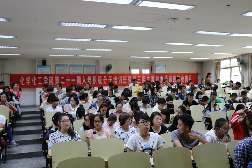 第二十一期入党积极分子培训班暨第三期发展对象培训班结业典礼于文萃校区1教举行,学院党委副书记潘瑞、2013级学生党支部书记王艳梅及本期培训班130余名学员参加了典礼。