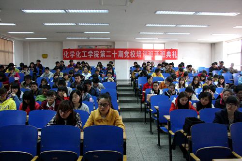 第二十期党校开班典礼在北教422教室举行。学院党委副书记潘瑞、2013级学生党支部书记王艳梅及160名学员参加了开班典礼。