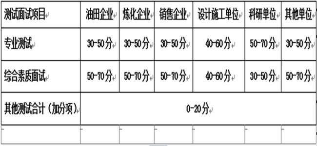 3.测试面试主要包括专业测试和综合素质面试,合计100分。各招聘单位还可根据岗位需要,增加其他测试项目,其他测试项目加分分值合计不超过20分。同一招聘岗位执行同一测试面试标准。
