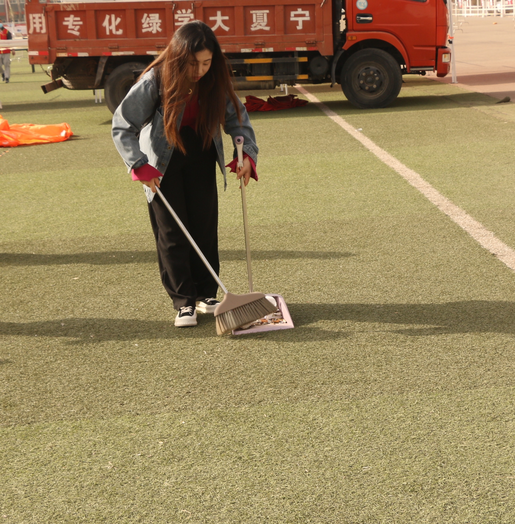 在任务分配好之后,志愿者们到各自负责的清扫区域去进行打扫。在整个志愿活动过程中,志愿者们活力四射,虽是简单的清扫活动,但志愿者们没有松懈,全都认真地去做,由于做核酸检测的需要,志愿者们被临时安排去搬桌子,搭帐篷,贴一米线隔离带等,虽然这并不在计划中,但志愿者们毫无怨言,全都打起精神,认真地配合工作人员做好这些核酸检测的前期准备工作。