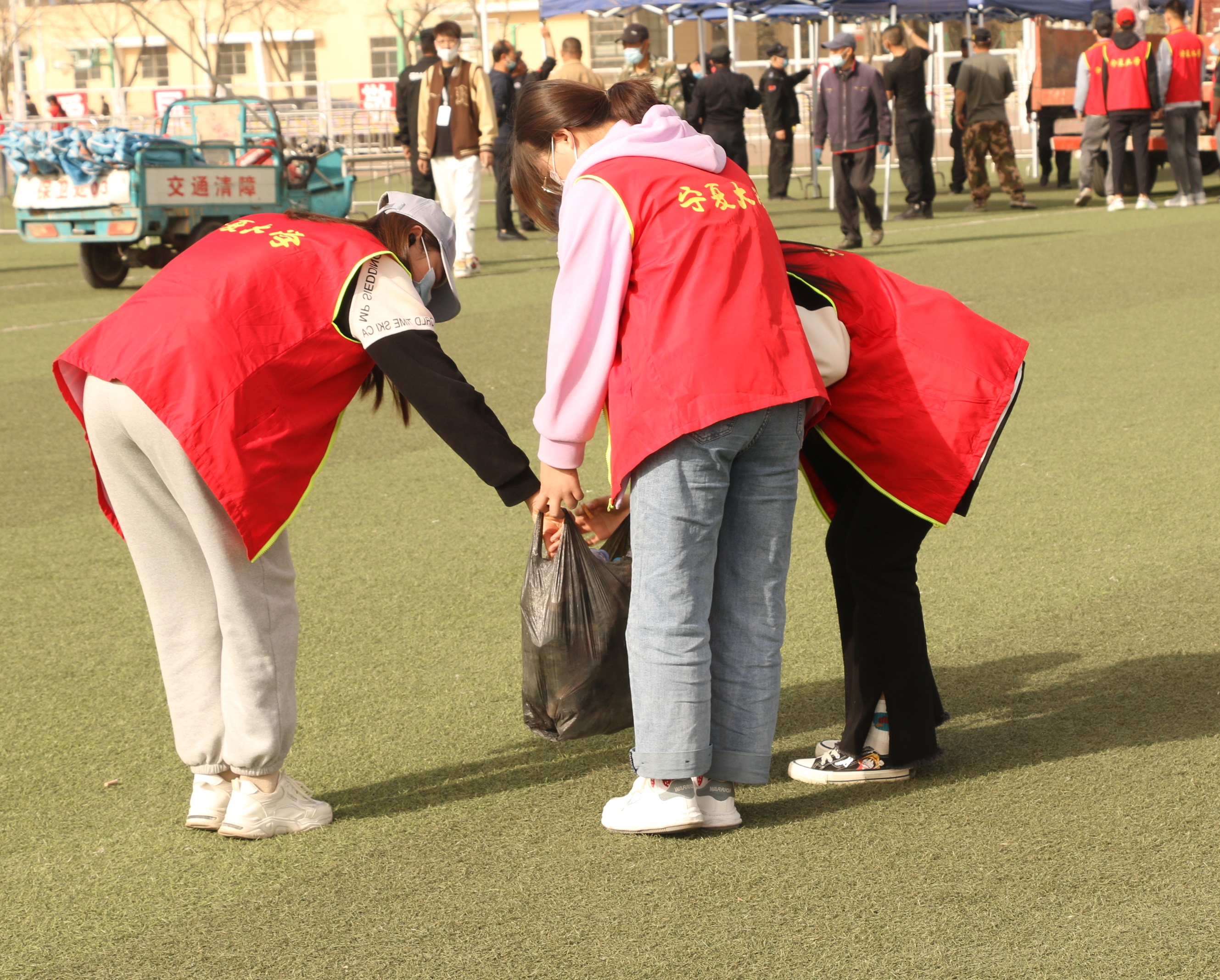 在本次的志愿活动中,志愿者们工作十分积极、认真。他们的热情荡漾在校园里,汗水挥洒是他们心中高度的社会责任感和服务意识。经过志愿者们的努力,操场恢复了往日的干净整洁,核酸检测现场也准备妥当,本次活动的圆满结束。