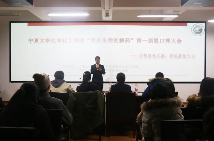 “笑是美好生活的催化剂”脱口秀大赛在知化楼115报告厅隆重举行,排列五