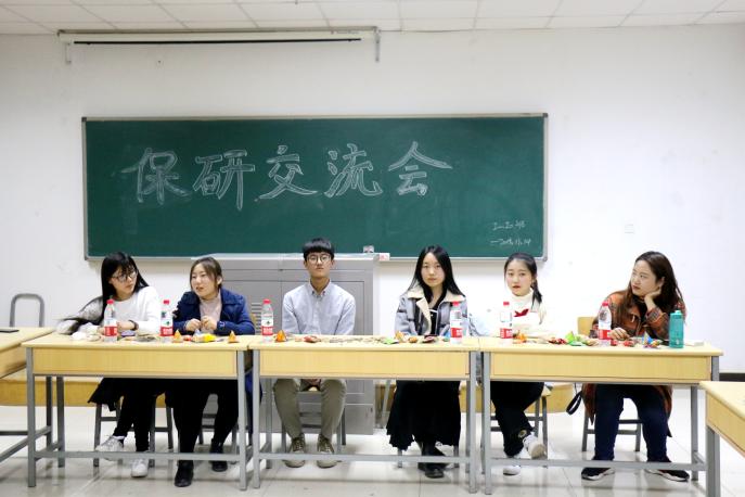 座谈会上,大四老生分享了他们各自的学习经验及历程。姚佳和韩静茹强调了英语学习及四六级的重要性,并结合自身经历解答了许多大一新生对于四六级的问题与疑惑;钟义和刘圆为同学们介绍了各门专业课的具体学习方法,并与同学们分享了自己的学习经验与学习笔记;高钰婧和王贵为同学们讲述了如何合理利用好课余时间,并鼓励同学们积极参与各项活动。郝菲妮和袁羿为同学们分享了心态调整的必要性,她们强调,做人要真诚,做事要踏实,在面临困难时要有自信,学习生活需积极调整自己的心态;贺婉萍和张珏铷与同学们分享了保研经验,提高同学们的学习动力;夏陈迹告诉同学们应积极调解心态,尽快融入大学集体生活中去。