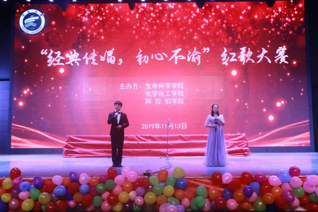 、阿拉伯学院与生命科学学院于大学生活动中心联合开展“经典传唱,初心不渝”红歌大赛暨“不忘初心,牢记使命”知识竞答大赛。