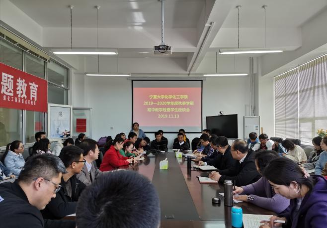 期中教学检查座谈会于知化楼301室召开。排列五