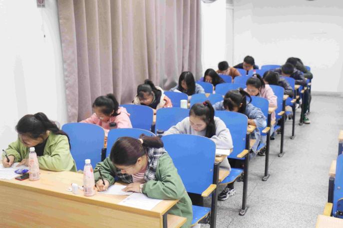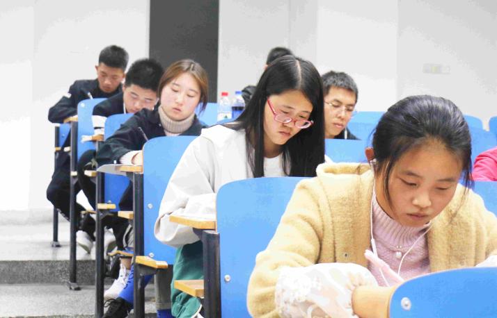 本次模拟考试按照国家英语四级考试的相关要求,为同学们提供实战模拟考场。考试过程中,监考人员要求严格,纪律严明,考生们态度端正,诚信应考。在严肃、紧张的氛围中,考生们全神贯注地答题,严格按照考试内容合理分配各题时间,调配答题顺序,现场秩序井然,有条不紊。
