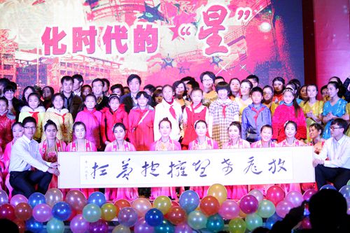 于A区音乐厅举办了“化时代的星”迎新年文艺晚会,许兴副校长、学生处及团委相关领导莅临晚会现场,排列五