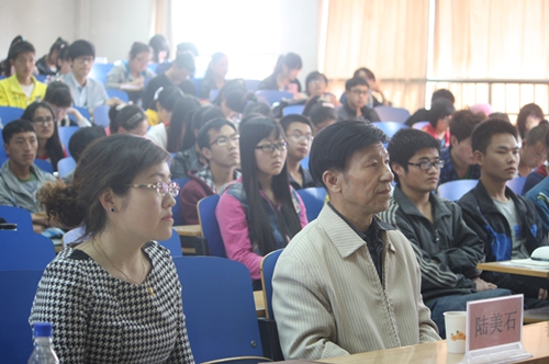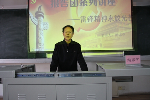 讲座开始前,陆美石老师向同学们详尽阐释了“关工委”和“五老报告团”的含义。随后,纳志学老师就“雷锋生平的简介”、“什么是雷锋精神”、“为什么要学习雷锋精神”、以及“怎样学习雷锋精神”四个方面对雷锋精神做了详尽的讲解。整个讲座中,纳老师深入浅出、条例清晰的为在座的积极分子阐述了雷锋精神,并以一位老教师、老同志、老人的角度,向年轻人提出了殷勤的希望。陆美石和纳志学两位老师都已经是72岁高龄的老人了,为了给同学们讲好这次课,纳老师翻阅了大量资料,花了好多天时间进行整理,工工整整的写下了近万字的讲稿。他们这种精神本身就是一种雷锋精神的体现。