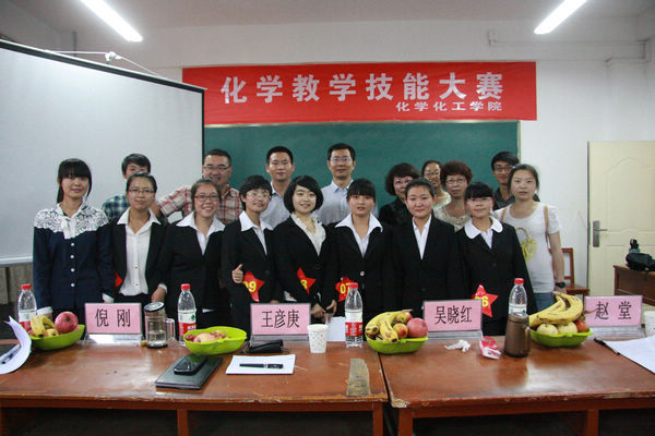 “化学教学技能大赛”决赛在工科楼六楼举办。本次比赛邀请到了学院副书记王彦庚、副院长倪刚、有机组赵堂教授、分析组韩晓霞教授以及化学教育专业吴晓红教授担任比赛评委,部分12级学生进行了现场观摩。
