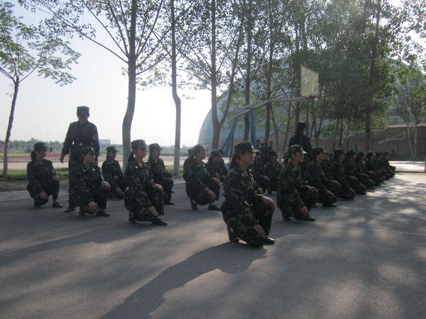 进入预军训第二天拉练训练。曹洋老师担任本次预军训教官。2011级全体学生着装整齐,严肃认真参加军训。