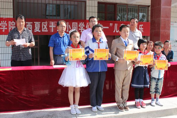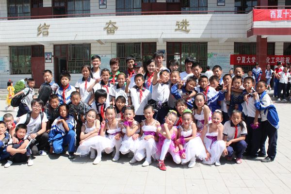辅导员曹洋老师带领着学院志愿者大队部分志愿者来到西夏区第十三小学和同学们共庆“六一”表彰大会暨首届文化节。