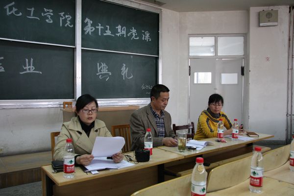2012年4月18日下午,化工学院第十五期党课结业典礼在北教131教室举行,学院党总支书记李嗣丞做了《传统文化与大学生修养》的专题讲座。党总支副书记潘瑞主持了结业典礼。