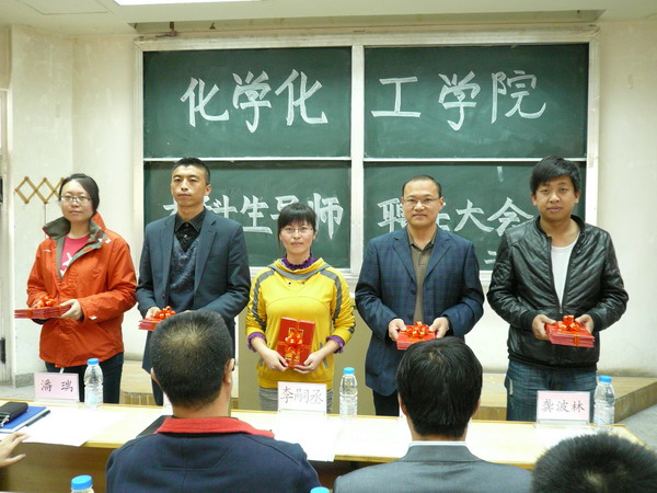 2011级本科生导师的任命决定》,随后由学院党政领导分别向本次聘任的本科生导师代表颁发聘书。接着,导师代表和学生代表发言,分别代表受聘导师和2011级全体学生表达了自己对导师制的认识和对学院推行导师制的感激之情。会议最后学院党总支书记李嗣丞发表了热情洋溢的讲话,他以“小鱼跟着大鱼游”为例,讲了导师制的精粹所在,并对导师提出了四个要求,其中重点强调了导师的职责以及如何与学生进行交流;对2011级新生提了三点期望,希望他们与导师一起努力,开拓创新,创建排列五