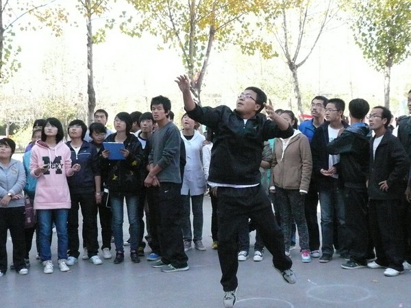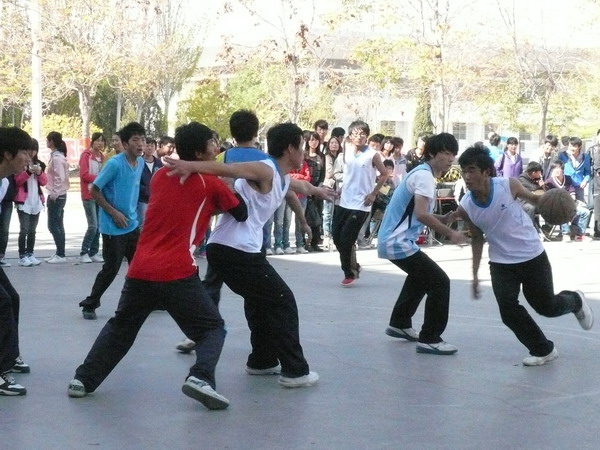 在C区篮球场举行趣味篮球比赛,11级全体同学和09级、10级部分同学参加本次篮球比赛。