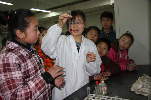 A区主楼及主要建筑、B区凌云广场、C区图书馆、化工能源实验室、无机实验室和有机实验室。中午,志愿者和小学生们在C区餐厅里一起吃饭,其乐融融。下午,在12#楼党员活动室,志愿者们和小学生们开展了交流互动,每个孩子的脸上都洋溢着笑容。