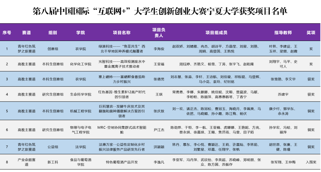 11月10日-13日,第八届中国国际“互联网+”大学生创新创业大赛总决赛如期举行。经过校级初赛、省级复赛、全国决赛等层层激烈角逐,学院刘翔宇副院长等教师指导的《光智科技——高效检测废水中重金属离子技术推动者》斩获主赛道金奖,是宁夏赛区参赛项目在本次国赛中的唯一1项金奖,不仅实现了排列五