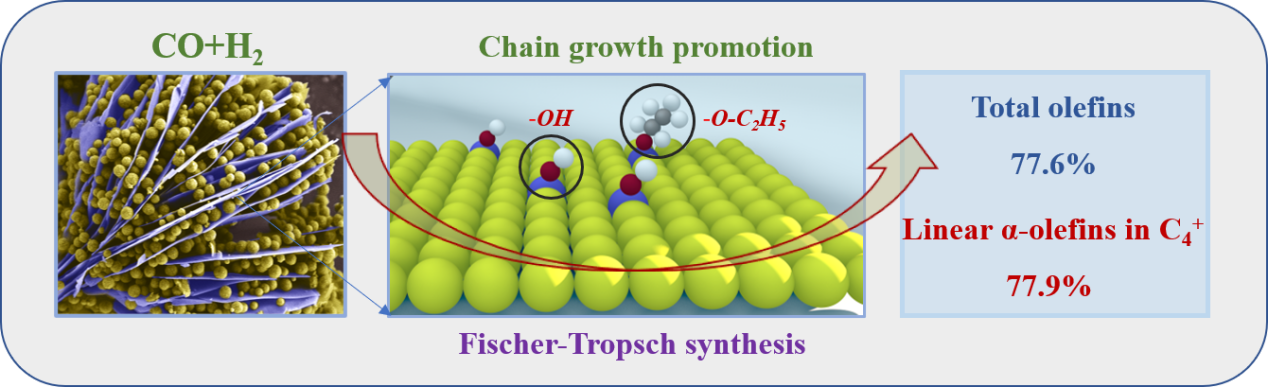 “煤基应用催化”团队在合成气催化转化线性α-烯烃研究方面取得了新进展,设计了一种新型亲水层状Fe基催化剂,实现合成气在典型费托条件(280°C, 1.5 MPa)下转化为烯烃,其中线性α-烯烃(LAOs in C2+)选择性高达77.9%。相关研究成果发表在国际知名期刊《Fuel》(IF=8.035),论文题目:Highly selective formation of linear α-olefins over layered and hydrophilic Fe3O4/MAG catalysts in CO hydrogenation。论文的第一作者为排列五