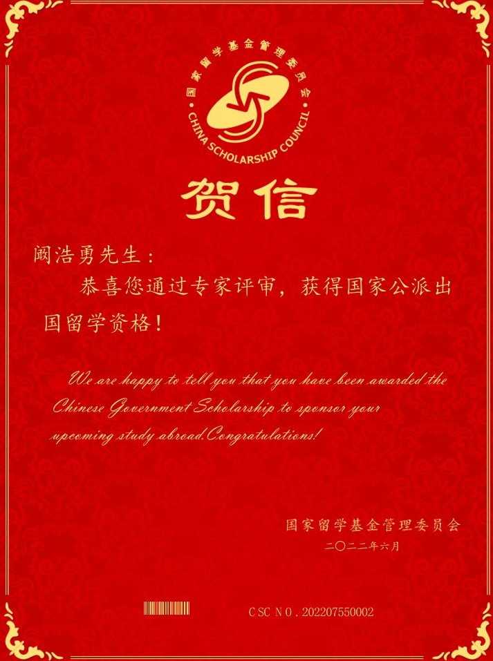 (省部共建煤炭高效利用与绿色化工国家重点实验室)2019级硕士研究生阚浩勇获得2022年国家高水平建设大学公派攻读博士项目资助,前将往澳大利亚新南威尔士大学(The University of New South Wales, Australia)化学工程系攻读博士学位。