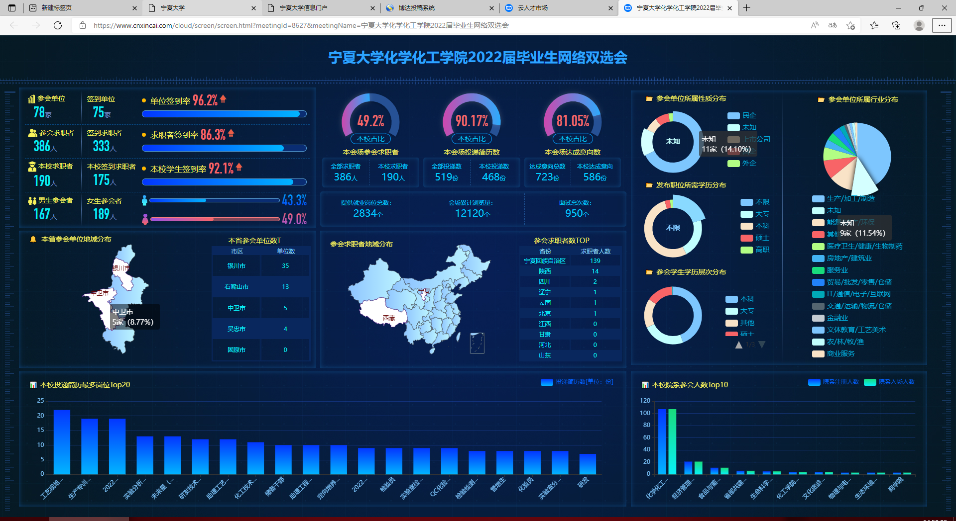 2022届毕业生踊跃参加线上应聘,积极调节求职心态,主动向用人单位推荐自己,展现化院学子积极、向上、自信、文明的精神风貌,各用人单位对排列五
