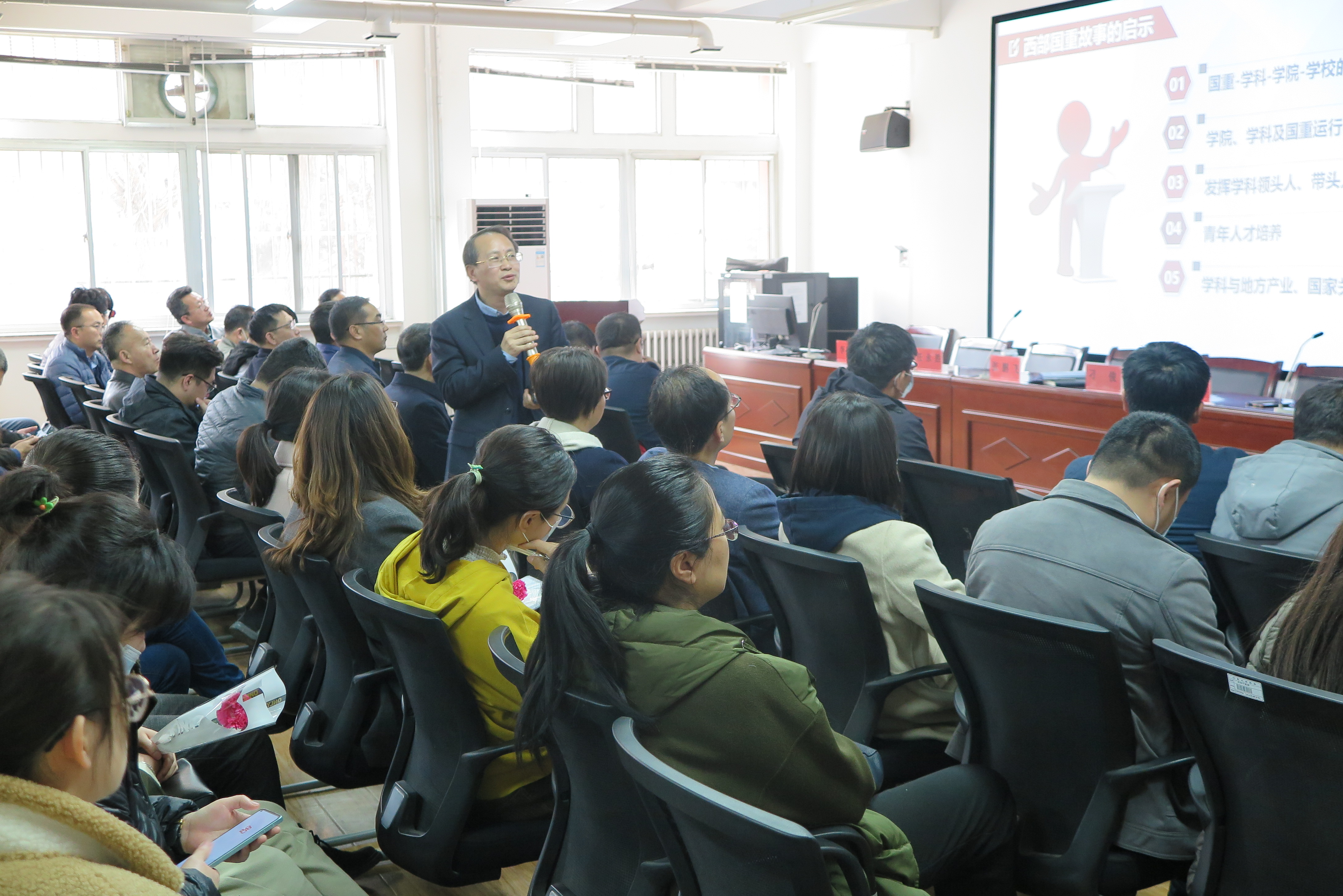 罗正鸿院长就院室现状、一流学科建设,学院、国重室发展建设思路向全体教职工进行了交流。罗院长表示,院室要紧盯一流学科整改和新一轮建设工作,“拧成一股绳”,齐心协力,努力建成运行机制与管理制度完善、适应现代一流学科发展的排列五
