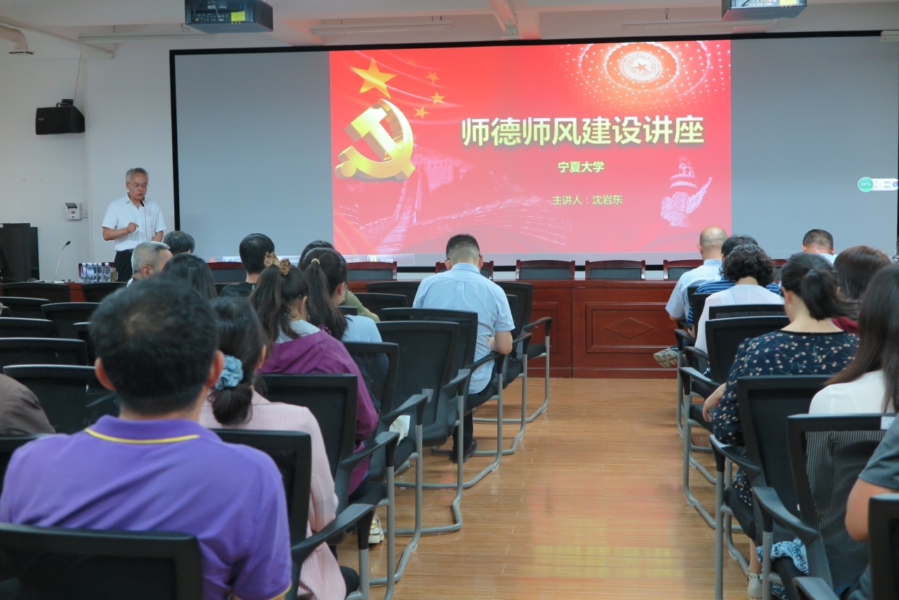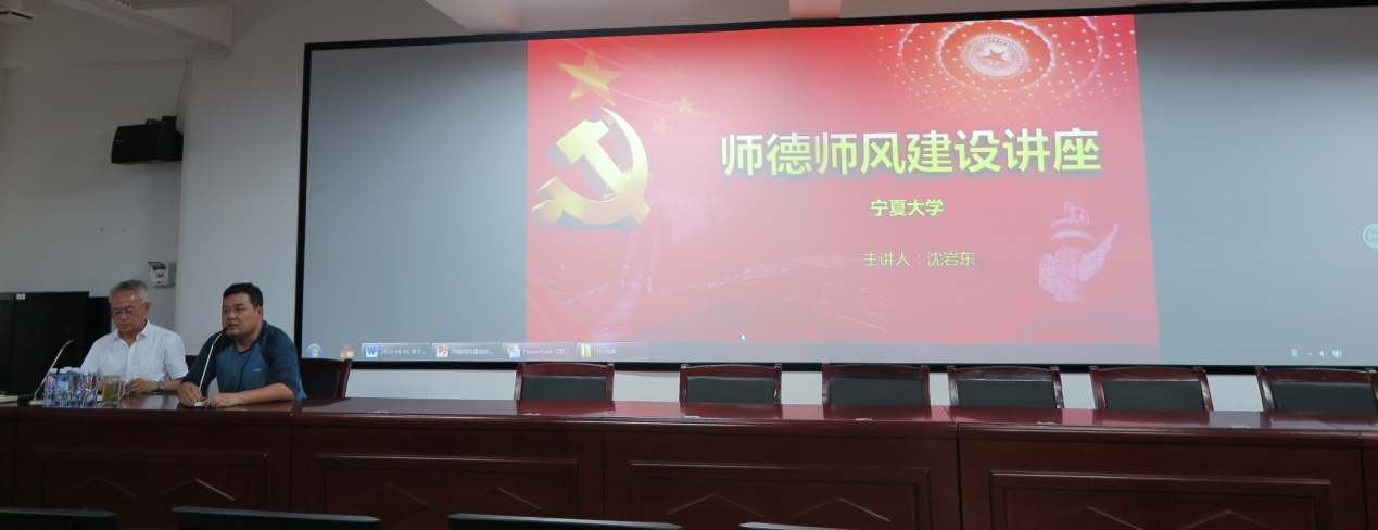 邀请生命科学学院党委书记沈岩东,在知化楼115室向院室全体教职工做了“师德师风建设讲座”。讲座由学院党委副书记刁俊主持。