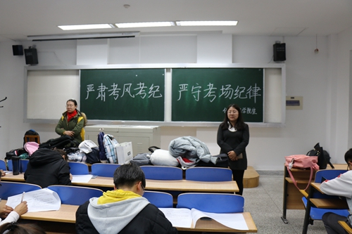 精心准备的《学生手册》测评考试于11月28日在文萃一教顺利开展。学院党委书记马玉龙、副书记刁俊,学生办公室辅导员老师马丽蓉、马洁、王凤霞巡视了考场,2018级全体本科生参与考试,考试以闭卷形式开。