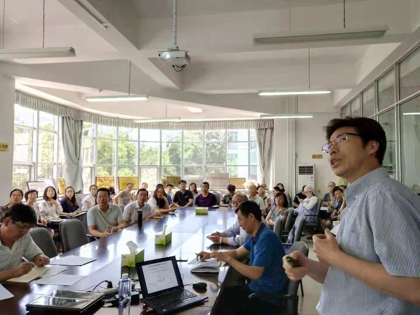 2018年7月11日,为促进排列五 一流学科的发展与“化学”硕士学位点的建设,学院邀请中国科学院化学所詹传郎教授来排列五 进行学术交流。双方就学院“化学”学科的发展进行交流,詹教授对排列五 “化学”学位点的自评估工作提出了一些很好的建议。当天下午,詹教授还为学院全体研究生导师做了一场“有机光功能材料的合成化学——结构与性能调控中的关键问题研究”学术报告。