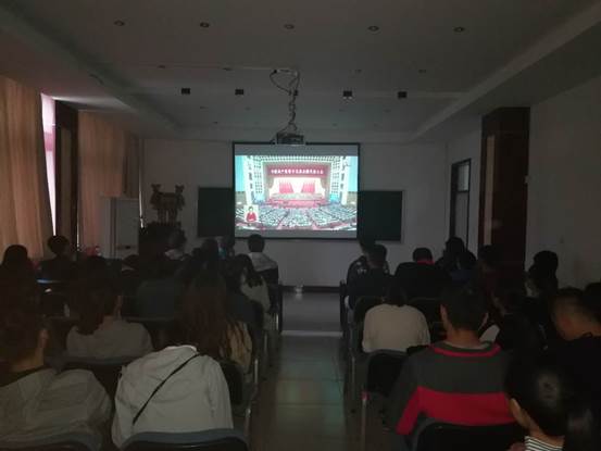 党委组织院室班子成员,此时段没有教学、值班任务的教职工,在学院知化楼3楼会议室,集体收看党的十九大开幕会,聆听习近平总书记代表十八届中央委员会向大会所作的题为《决胜全面建成小康社会 夺取新时代中国特色社会主义伟大胜利》的报告。