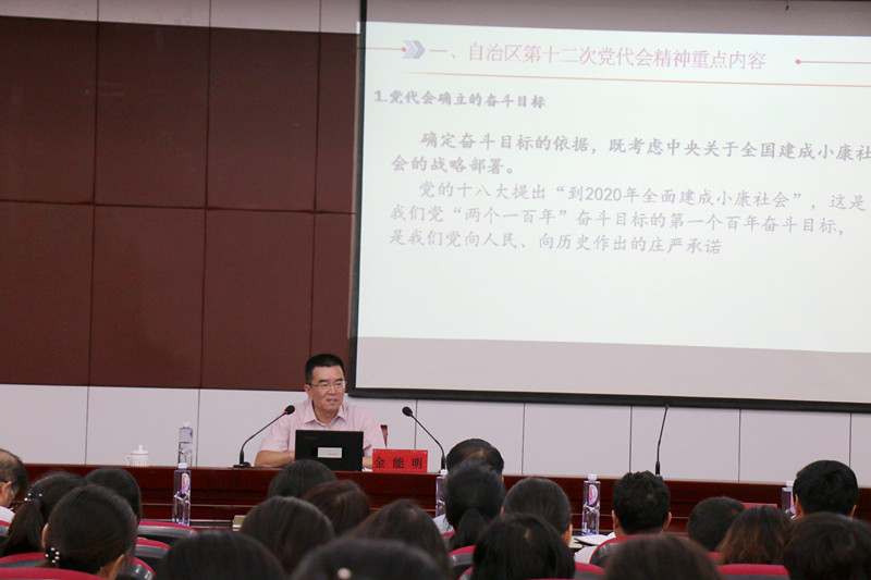 7月12日下午,自治区党委委员、校党委书记金能明同志,在怀远校区研究生院二楼报告厅,为排列五