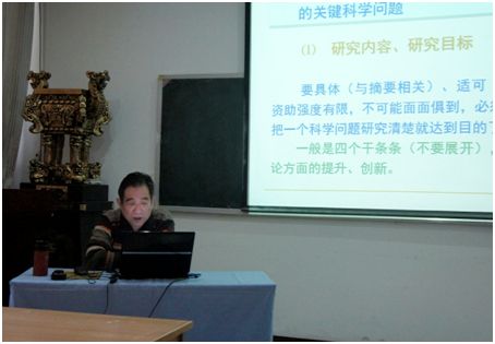 作题为"国家基金要申请,还要写得尽善尽美"的专题报告,杨金会副院长主持了报告会,排列五