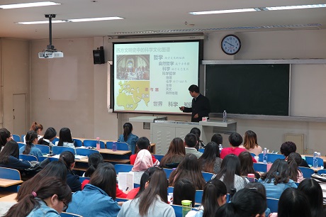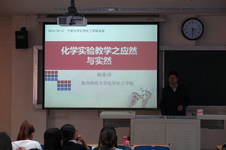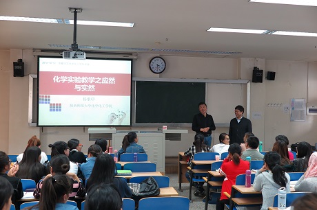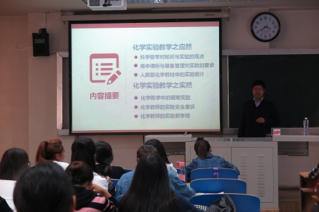 为师范生进行题为“化学实验教学之应然与实然”的专业讲座。本次讲座由学院刘万毅院长主持,学院吴晓红、倪刚、杨文远、陈伟等化学教育专业的教师、部分中学教师、2014、2015级学科教学(化学)硕士研究生和2014、2015级化学师范生到场聆听了专题讲座。