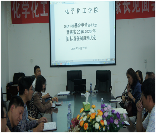 (煤炭清洁利用与生态化工重点实验室)在学院3楼会议室举行了2017年度国家自然科学基金申请启动大会暨落实“2016-2020年学院行政领导班子任期目标责任书”启动大会,会议由刘万毅院长主持。院室副教授以上职称以及具有博士学位的教师参加了会议。