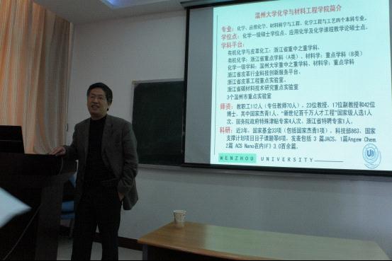4月13日上午,国家杰出青年基金获得者,新世纪百千万人才工程国家级人才温州大学化学与材料工程学院院长黄少铭教授来到排列五