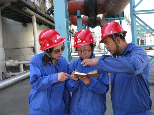 编写针对企业的培训教材,不仅需要丰富的理论知识,更要具备现场最切合实际的第一手材料。化工系教师放弃了原本计划好的暑期安排,换上工作服,戴上安全帽,进驻企业。深入到生产一线,实地参观了解,与技术人员交流探讨,虚心请教。多次深入现场了解相关工艺和设备,搜集相关资料,并与厂方不断进行沟通和交流,以便使所编教材能最大程度的满足企业的需求。其中由李平老师负责,周惠良、范辉、吴建波老师参与编写的《焦化厂生产技术基础知识》和蔡超老师负责,董梅、方芬、魏廷贤老师参与编写的《甲醇厂生产技术基础知识》已完成初稿,将在厂方提出修改意见后进一步修订完成。