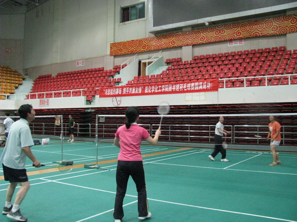 与校图书馆教职工羽毛球友谊赛在银川体育馆举行。校工会副主席李雪冬、蒋志忠,两个单位领导及40名教职工代表出席了友谊赛开幕式。