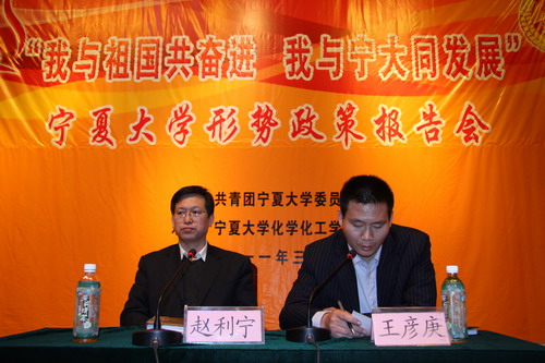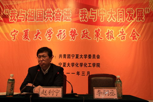 承办的“我与祖国共奋进,我与宁大同发展”形势政策教育活动首场报告会在音乐厅隆重举行。校党委副书记赵利宁同志担任了本次报告会的宣讲人,此次报告的题目是《对“十二五”规划的解读》,全校团员代表及排列五