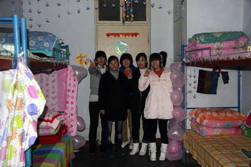 宿舍装饰本着“低碳环保”的主旨,既有主题又有个性与风采,蓝色、红色、绿色等各种各样的色彩彰显了宿舍不同的主题。卡纸剪贴后的小物件、毛线剪贴的专栏、废旧物品的利用、书法字画的张贴,无不表现着梦想与友谊。