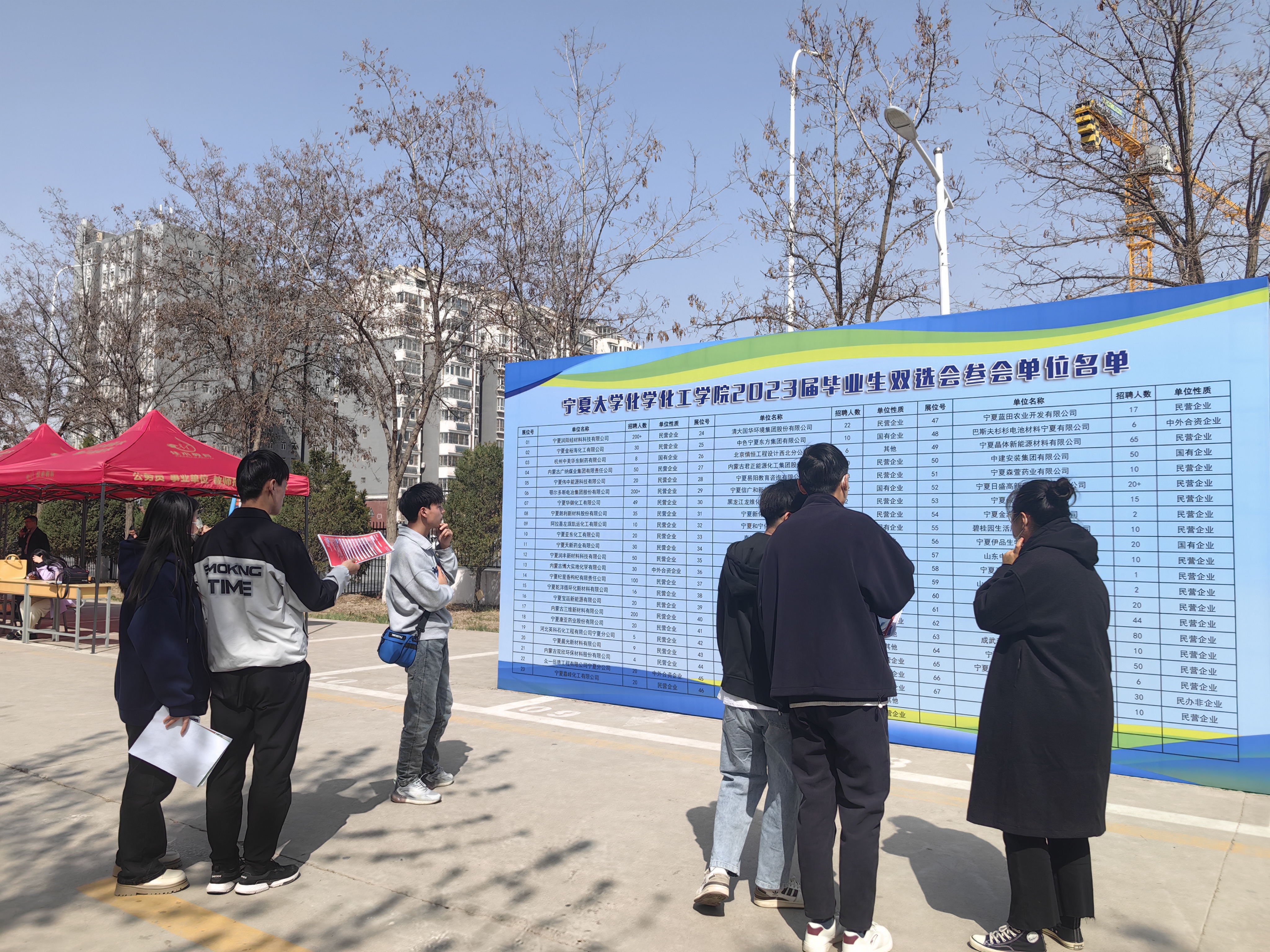 本次双选会吸引了来自宁夏、内蒙古、山东等地70余家用人单位,提供就业岗位近2000个,用人单位招聘岗位涉及化学化工类、材料类、机械类、经济类、管理类、计算机类等专业。