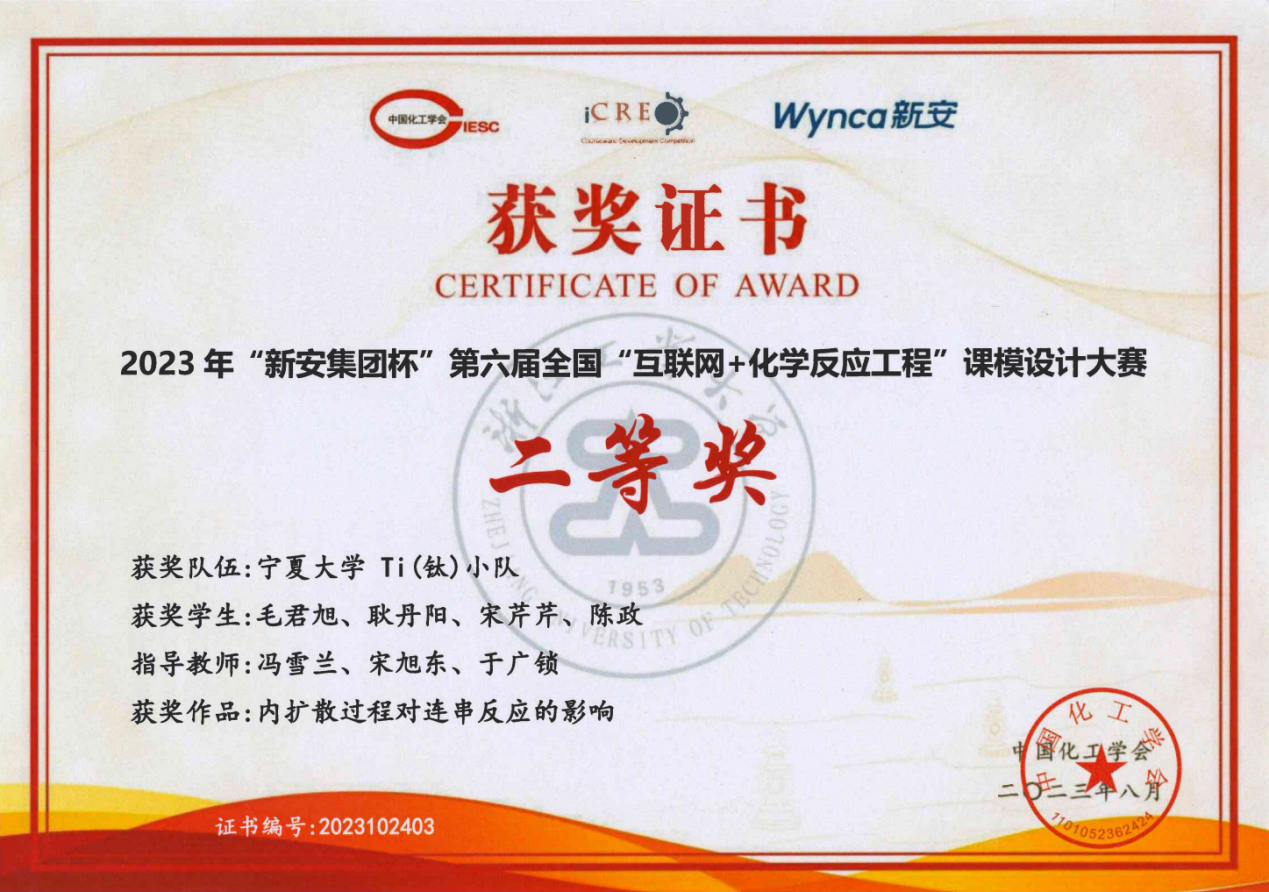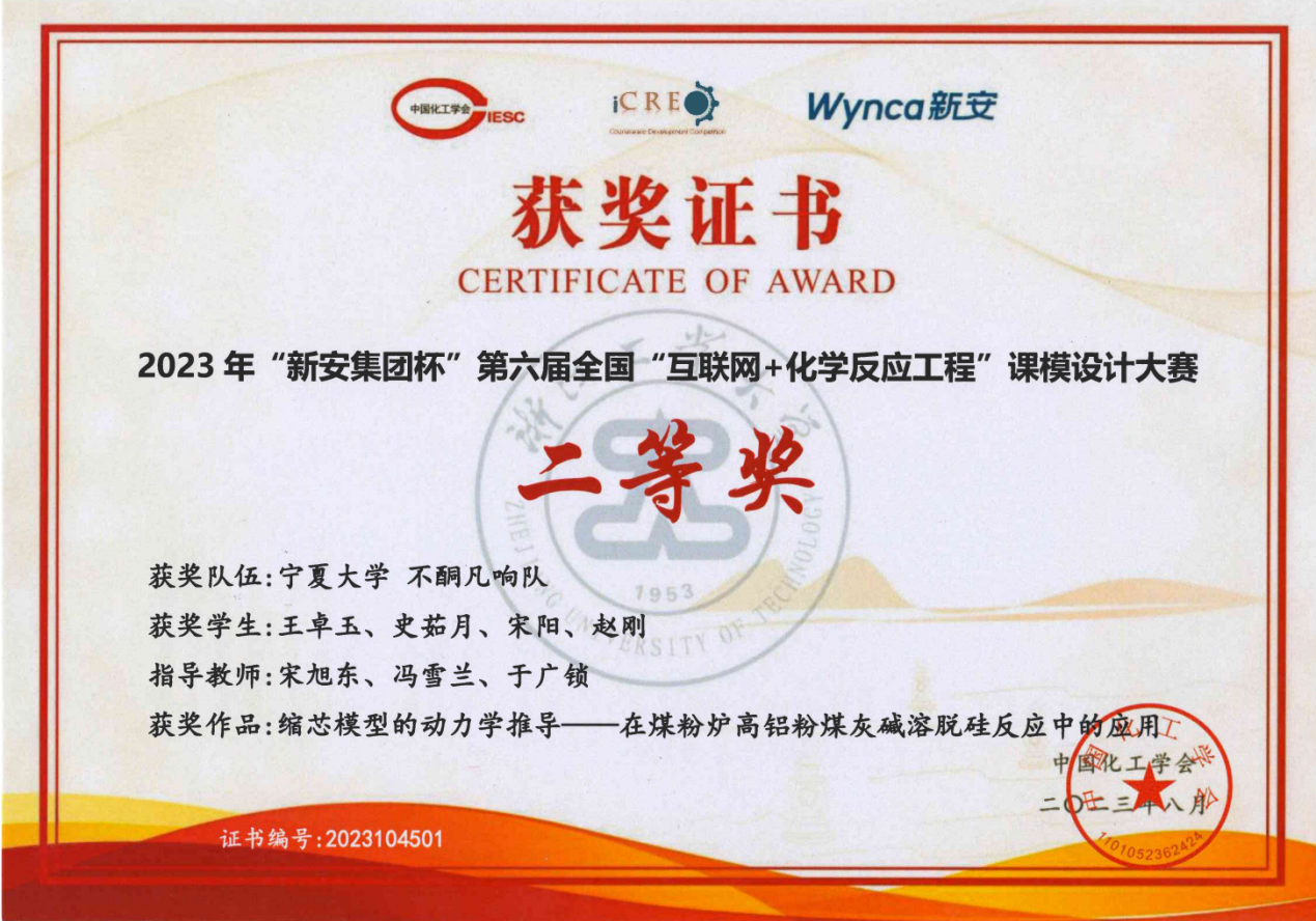 由中国化工学会主办,浙江工业大学承办的2023年“新安集团杯”第六届全国“互联网+化学反应工程”课模设计大赛于2023年8月3日在浙江工业大学莫干山校区举行颁奖礼。排列五