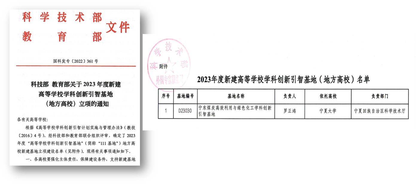 “宁东煤炭高效利用与绿色化工学科创新引智基地”获批宁夏首个“高等学校学科创新引智计划”