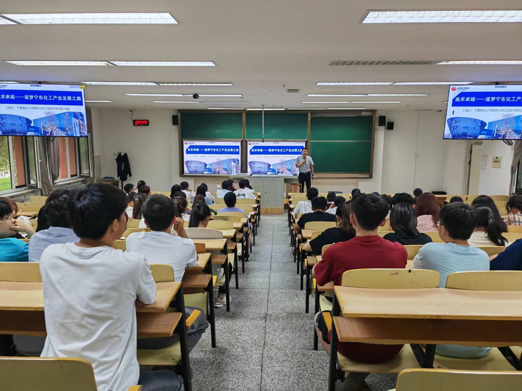 化工、应化专业本科生开展了“追求卓越--逐梦宁东化工产业发展之路”的报告,共有100余名学生参加,化工系主任李平教授主持了本次讲座活动。