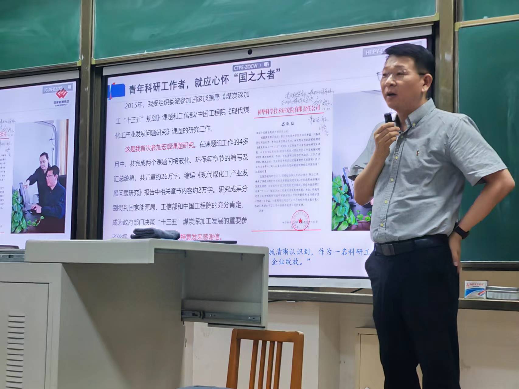 从生产一线的锻炼,到研发岗位的奋斗,李磊副院长先后入选中科院“西部之光”人才培养计划、自治区青年拔尖人才培养工程、宁夏回族自治区高层次人才,获得自治区科学技术进步奖二等奖、中国石油和化学工业联合会科技进步奖二等奖和中国煤炭工业科学技术奖二等奖各1项,获得国家能源集团科技创新先进个人、青年科技创新先锋,首届宁东“最美劳动者”,宁夏煤业公司劳动模范等荣誉。最后,他总结了自己工作十三年来的感受:“很苦、很累,但很有收获,更是这段经历,让我清晰认识到,作为一名科研工作者,时刻要心怀‘国之大者’,青春应当为国家、社会、企业绽放。”
