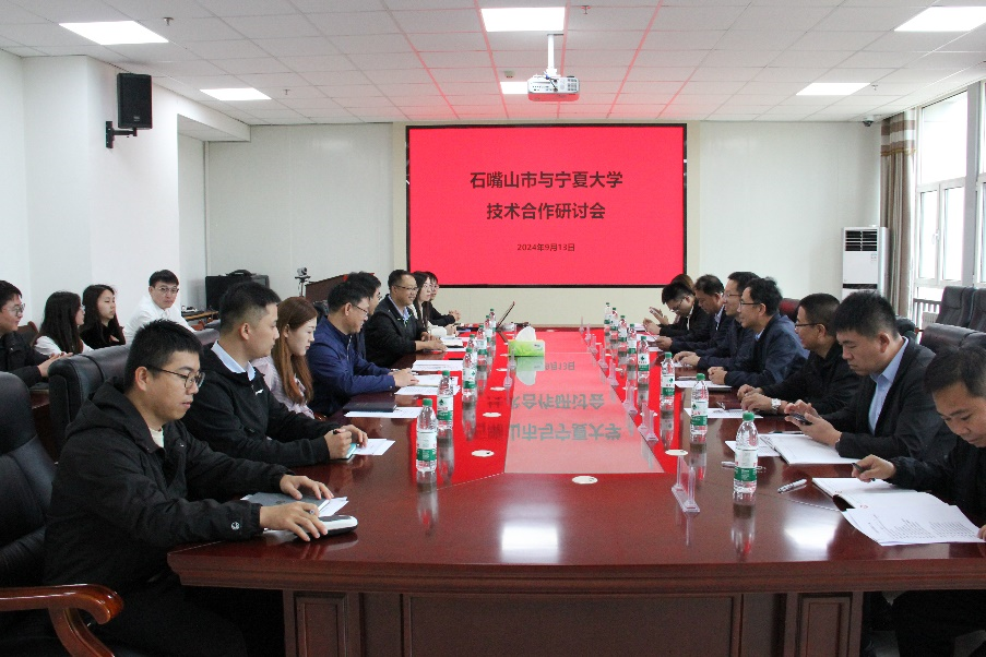 9月13日,石嘴山市人民政府副市长王晓雷、石嘴山市科技局副局长王兴平及石嘴山市九柱集团董事长孙军勇等一行九人访问我校省部共建煤炭高效利用与绿色化工国家重点实验室,开展产学研合作并召开座谈会。排列五