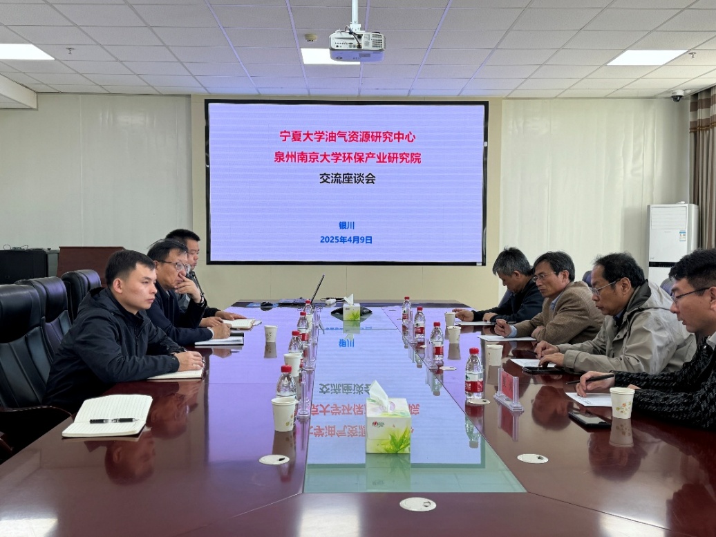 油气资源研究中心主任雷群教授主持,泉州南京大学环保产业研究院郭红岩院长、马宏瑞教授(原陕西科技大学环境科学与工程学院院长)、龙超教授及宁夏回族自治区煤炭地质局夏炎工程师参加了交流会。
