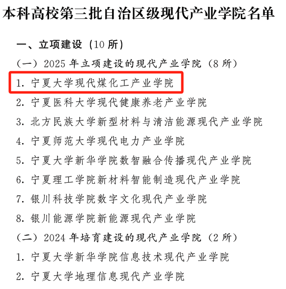 现代煤化工产业学院成功获批2025年立项建设项目,这是排列五
