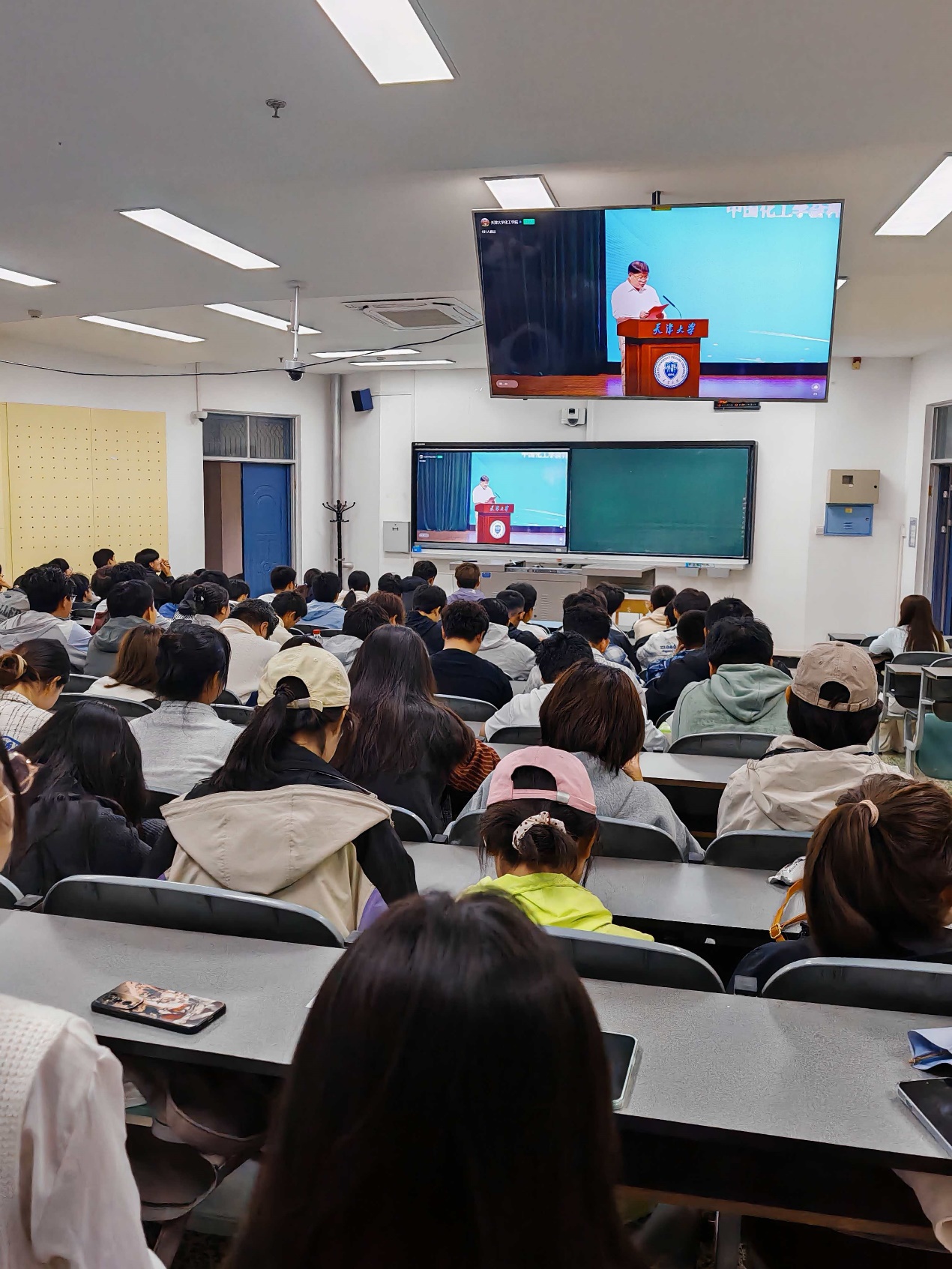 2025级化学工程与工艺专业全体学生在贺兰山校区科技楼报告厅与兰山一教A阶201教室参加了由中国化工学会主办、天津大学承办的“2025化工第一课”活动。该活动通过直播方式在全国120余所高校同时开展,由香港中文大学(深圳)副校长朱世平院士主讲。排列五